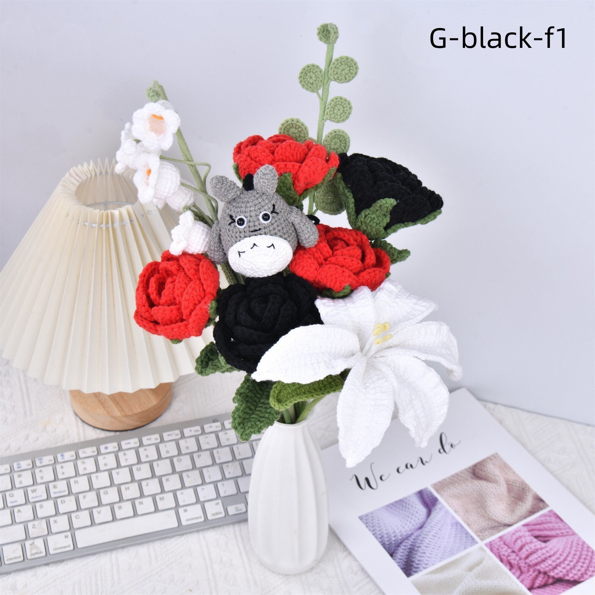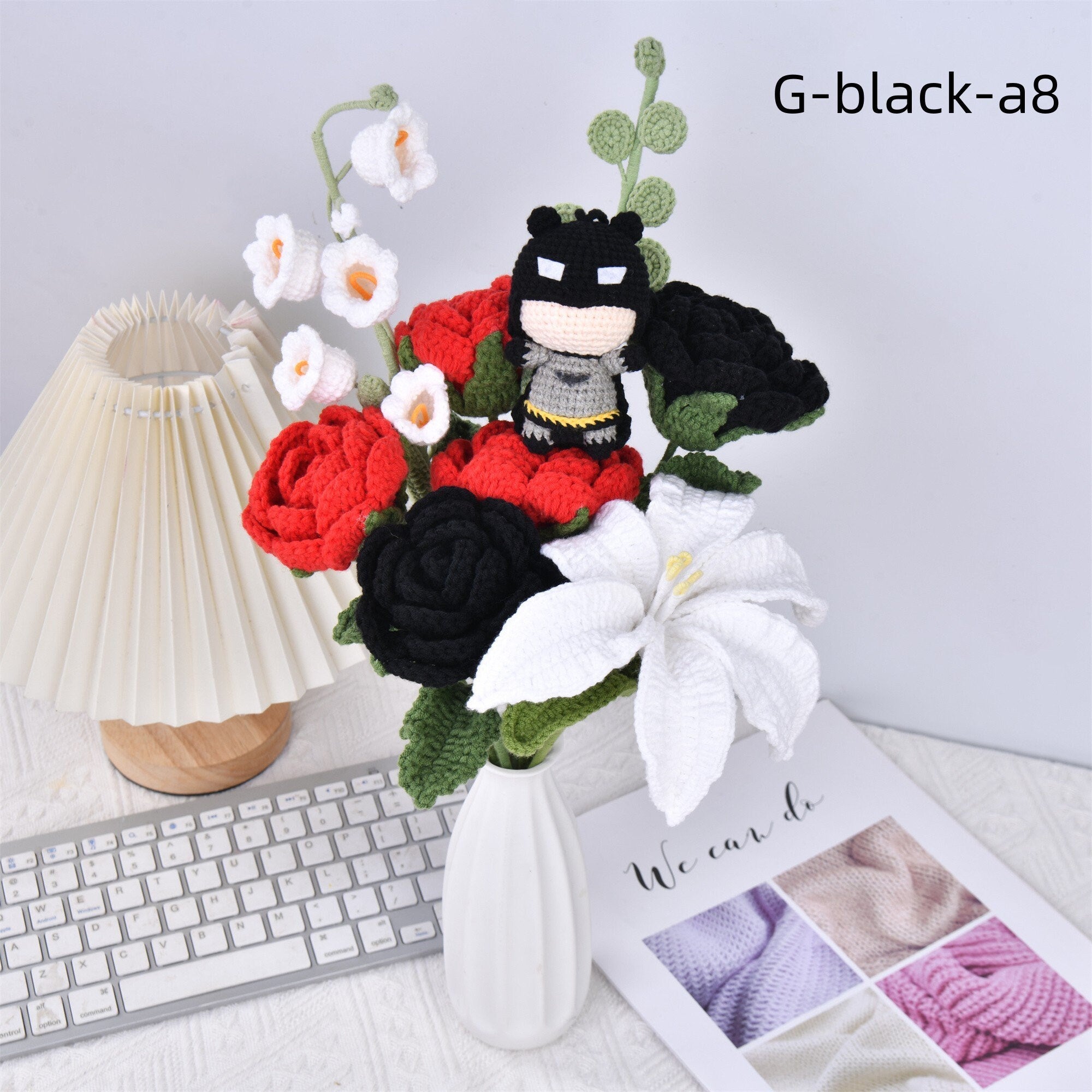 Handmade 9PCS Doll Black Rose Crochet Bouquet