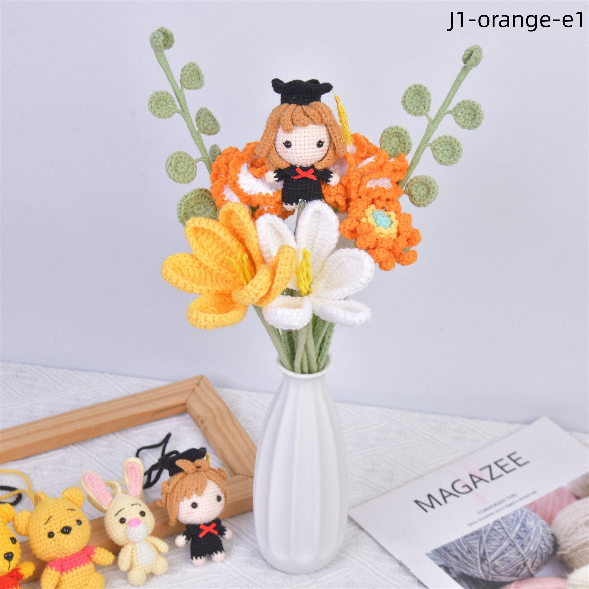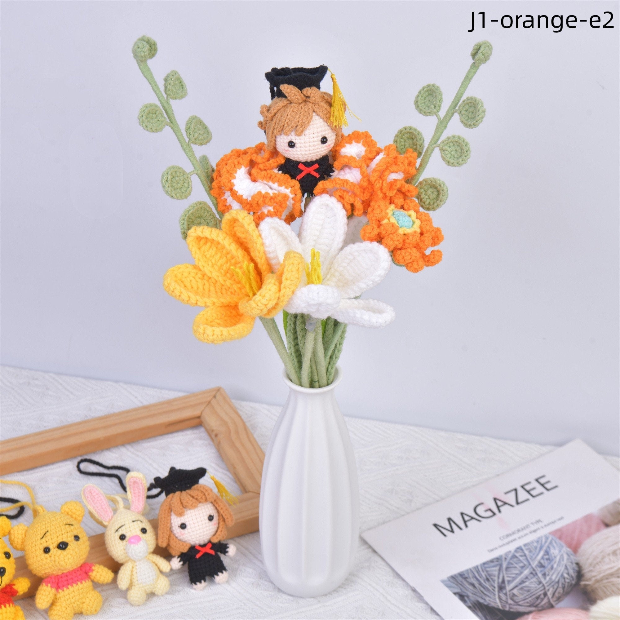 Graduation Doll Knit Rose/Tulip/Carnation/Sunflower/Gerbera/Eucalyptus Crochet Bouquet