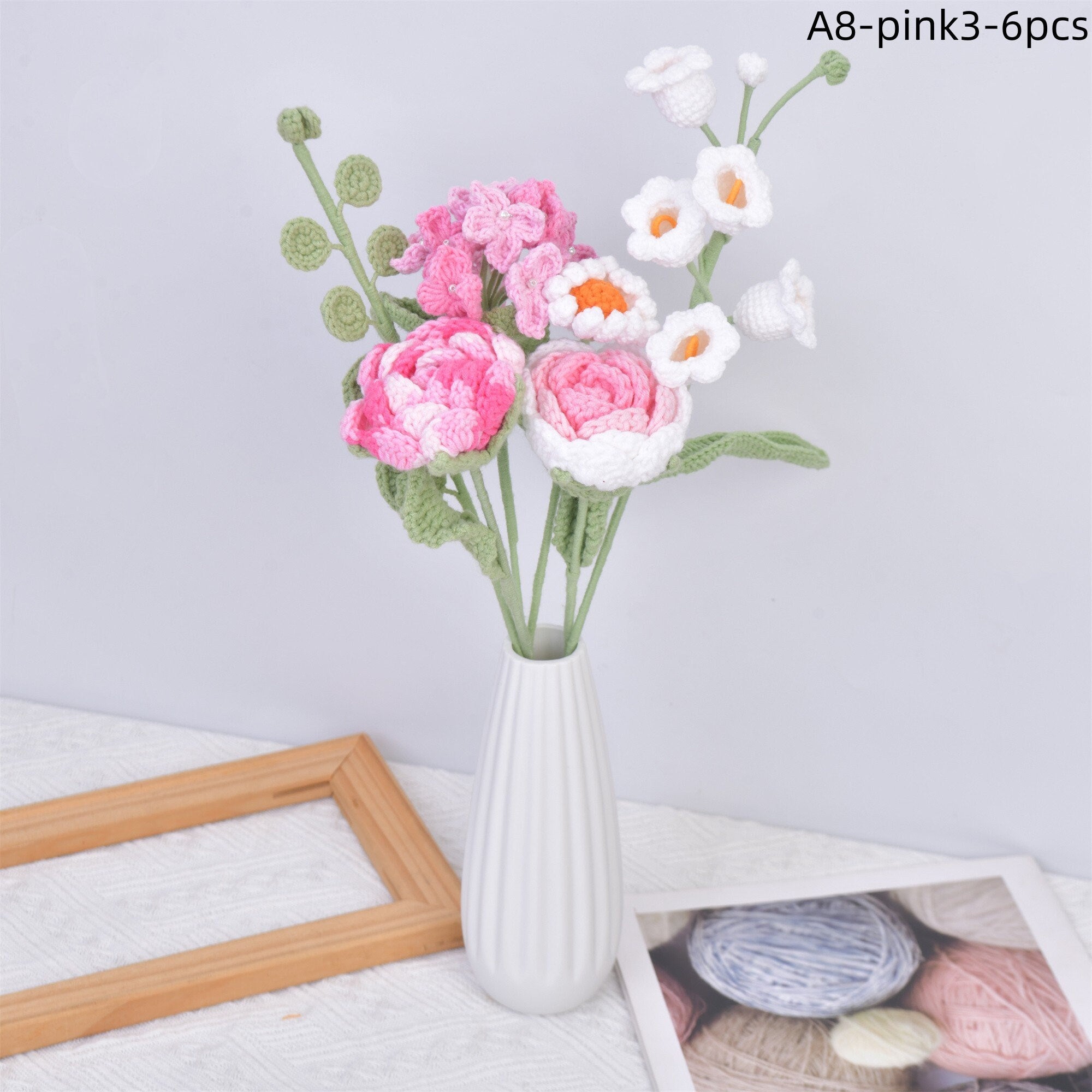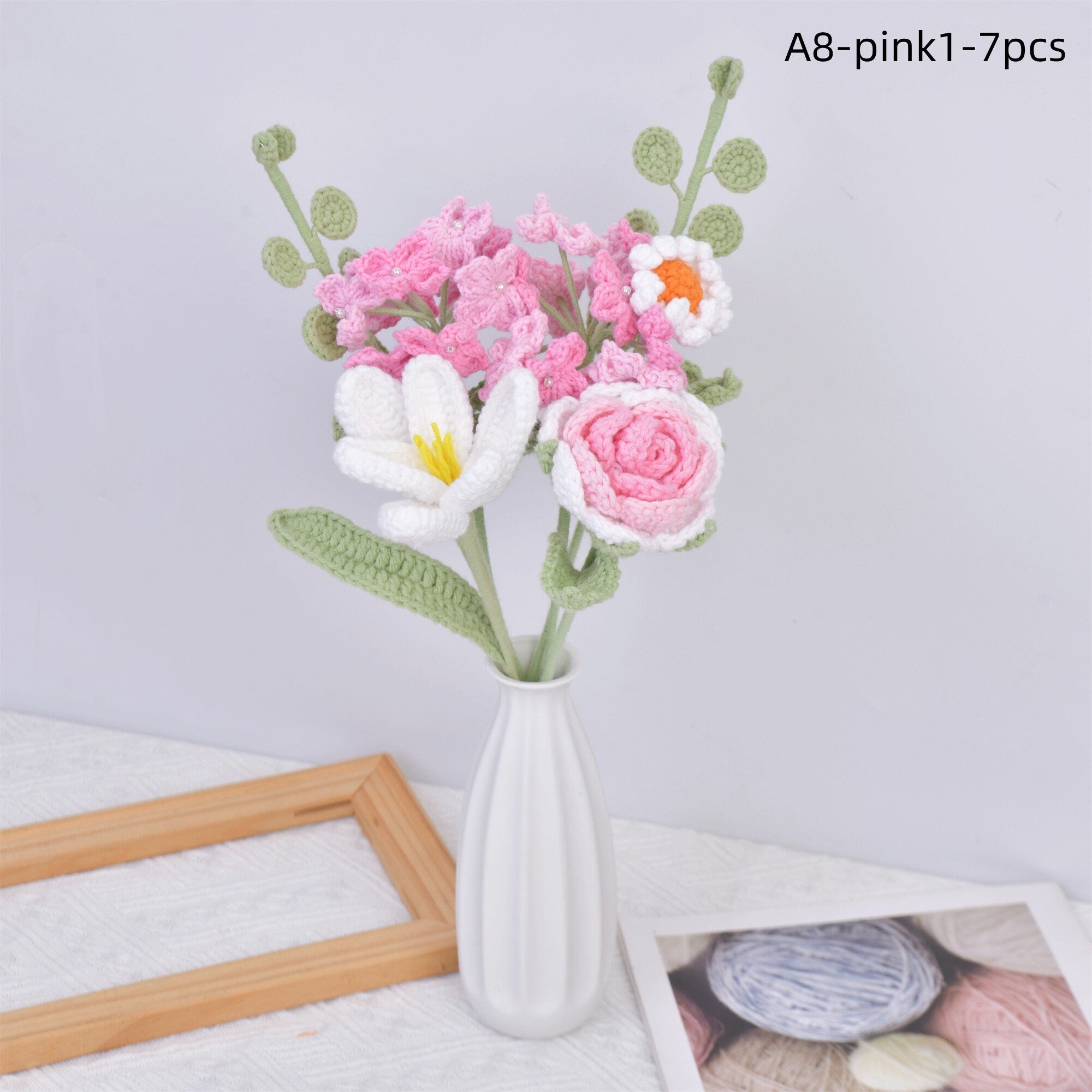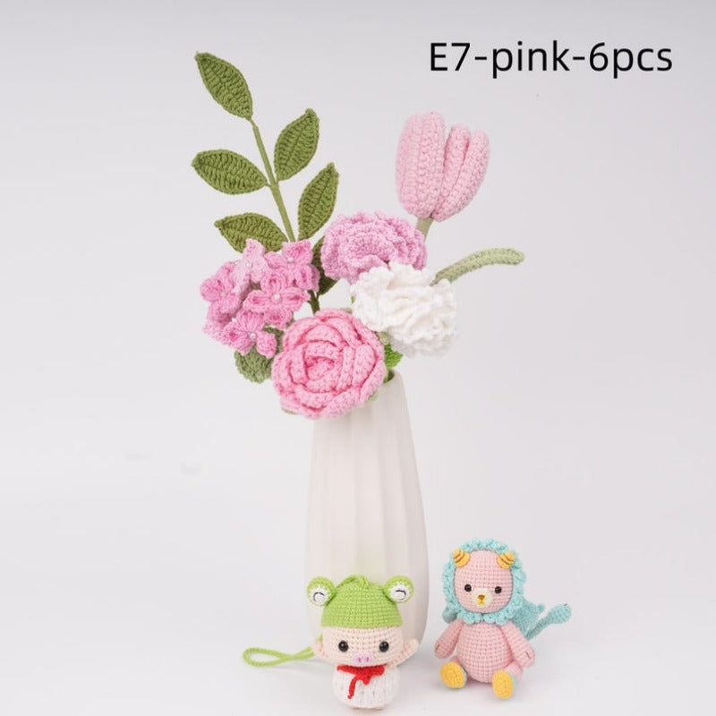 6/7PCS Handmade Rose&Hydrangea Crochet Bouquet