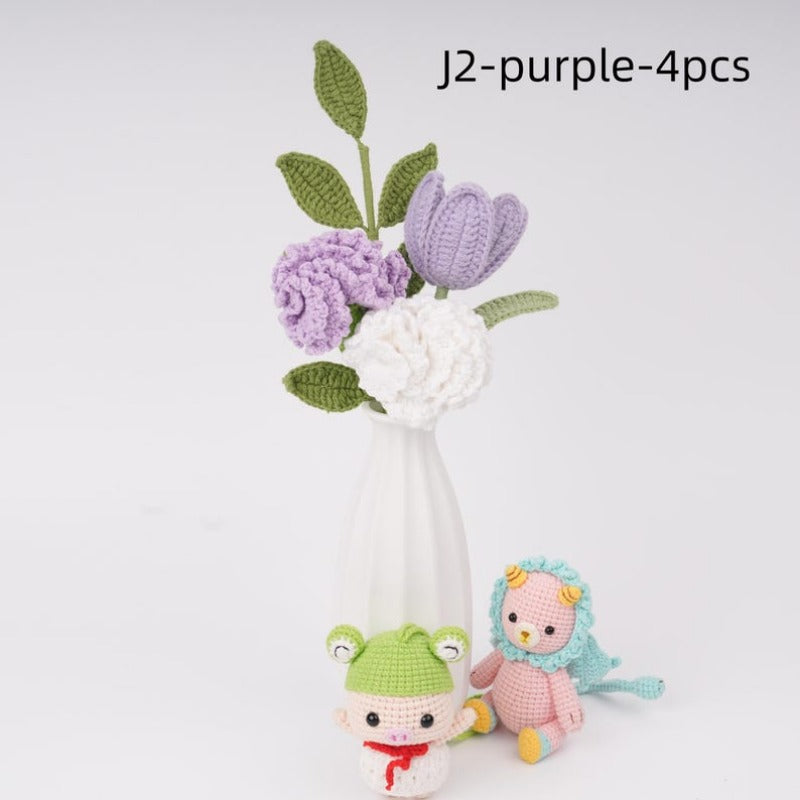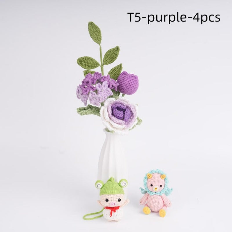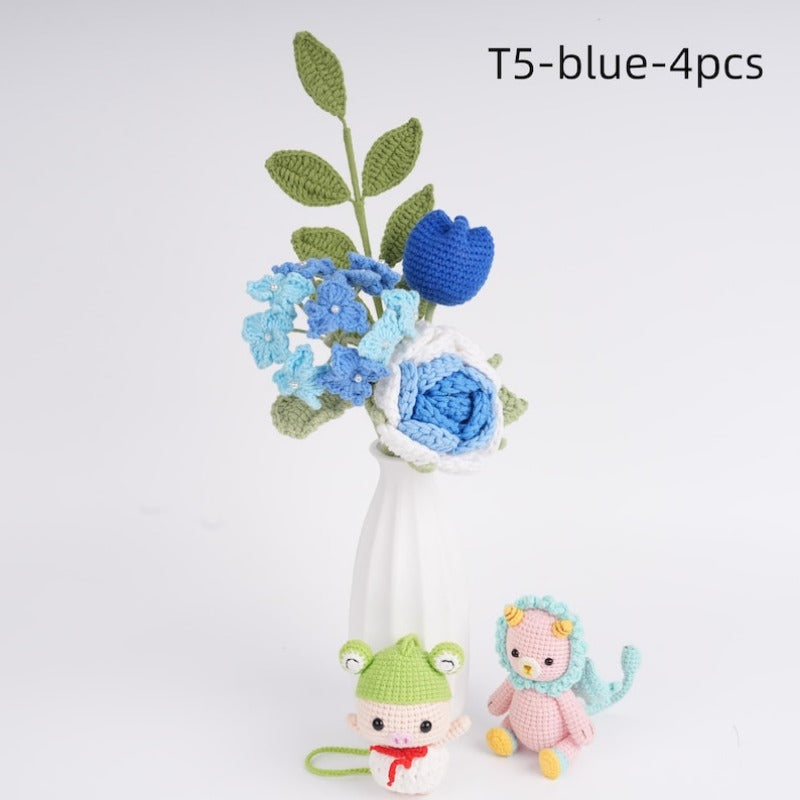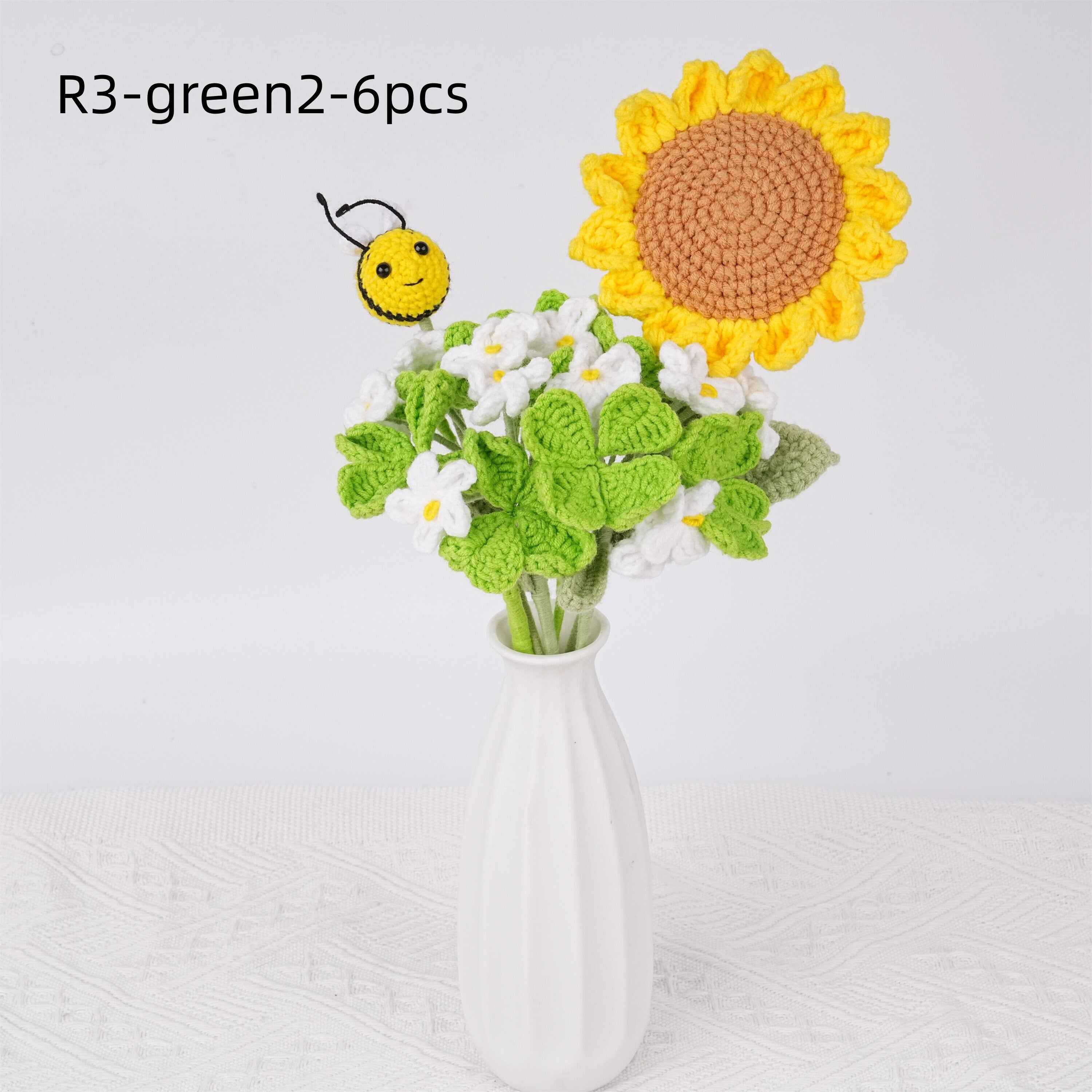 5/6PCS Handmade Four-leaf Clover/Tulip/Forget-me-not/Bee/Sunflower Crochet Bouquet