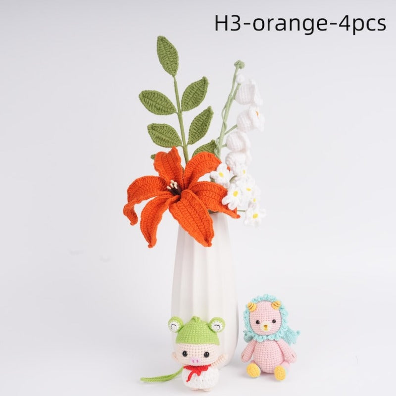 6PCS Handmade Lily Rose Crochet Bouquet