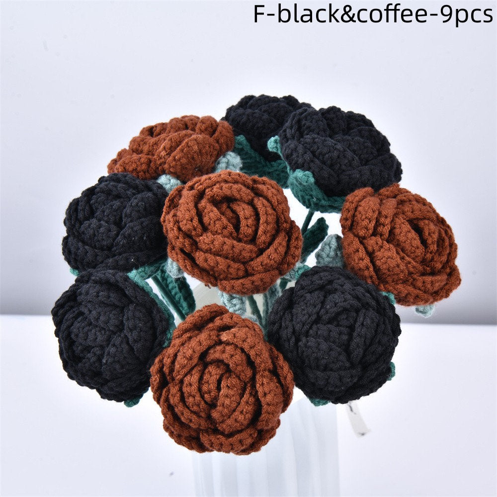 6/9/13PCS Handmade Rose Flowers Crochet Bouquet