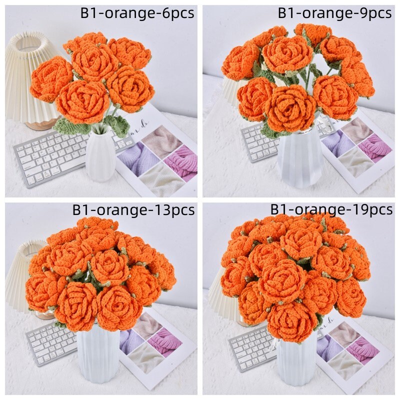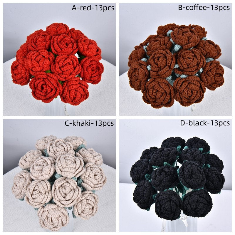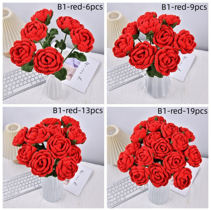 6/9/13/19PCS Handmade Rose Flowers Crochet Bouquet