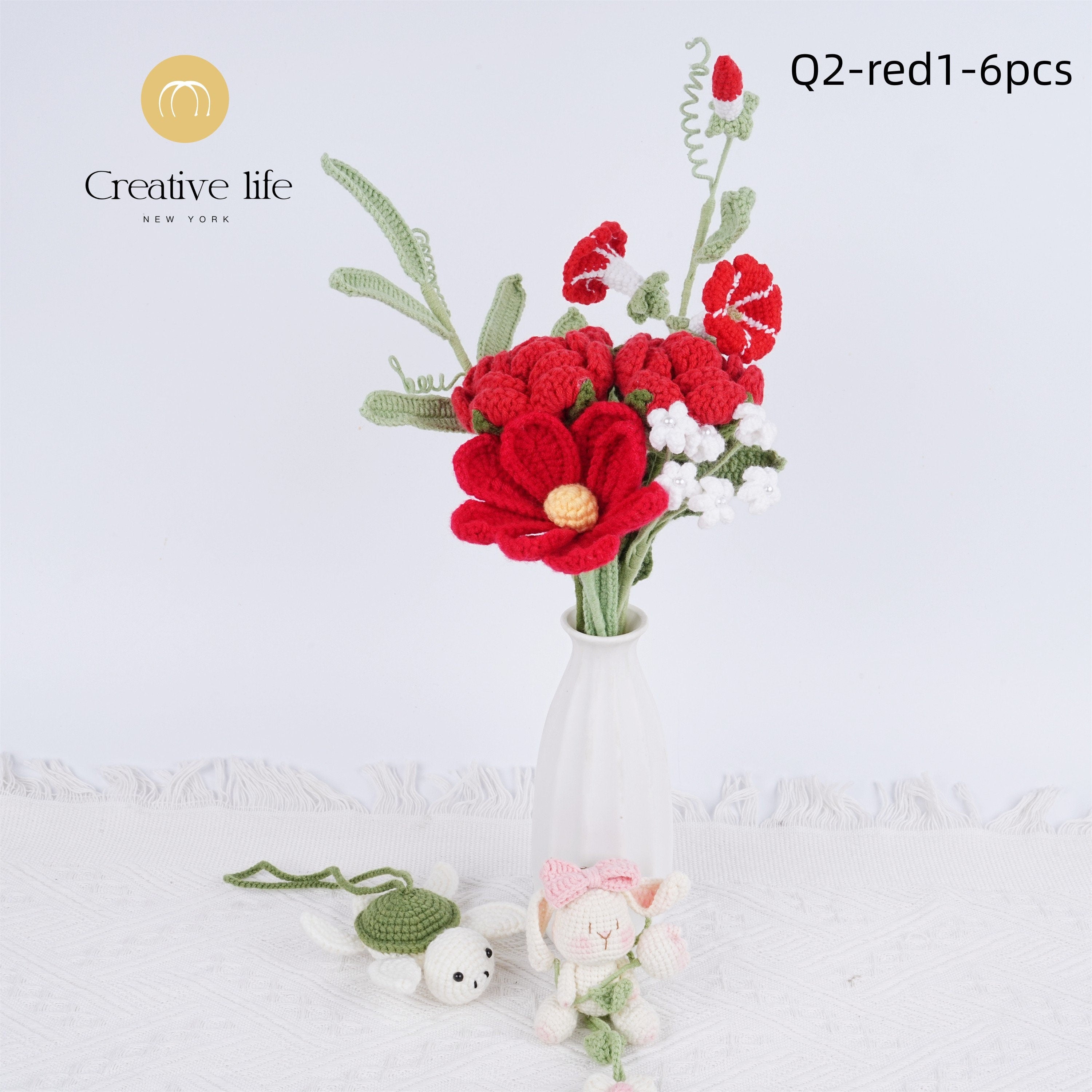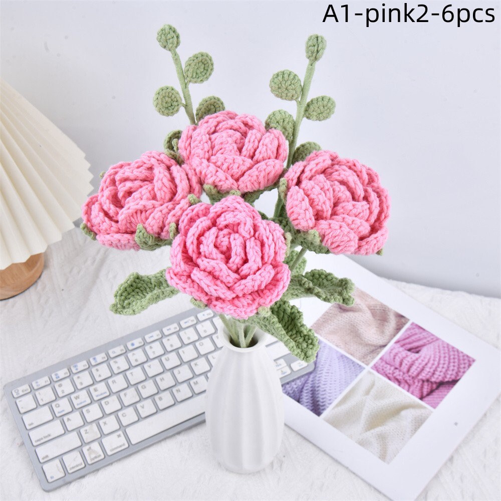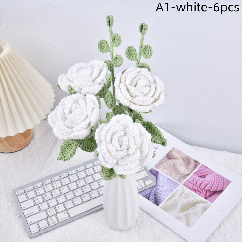 6PCS Handmade Colorful Rose Flowers Crochet Bouquet