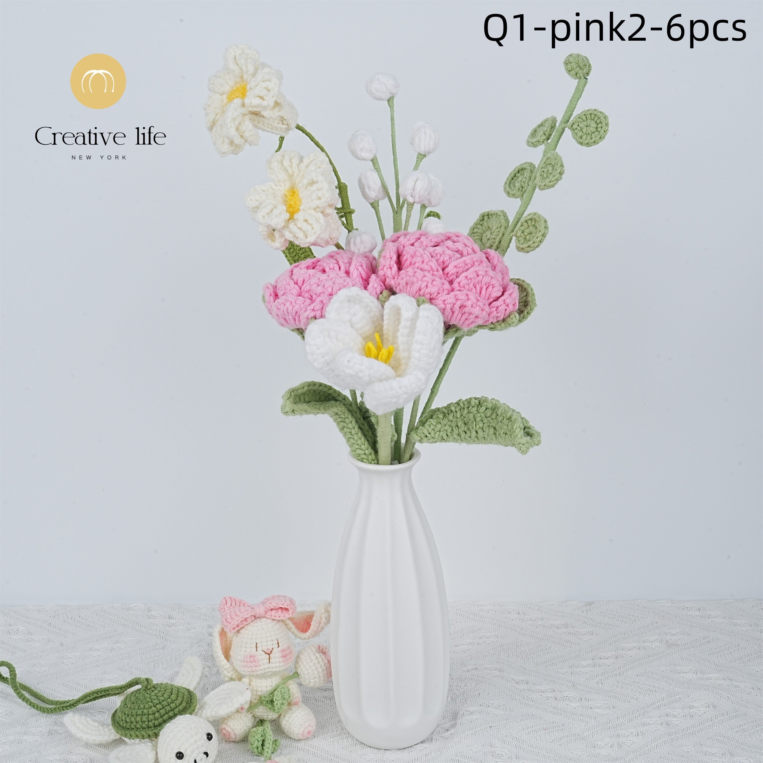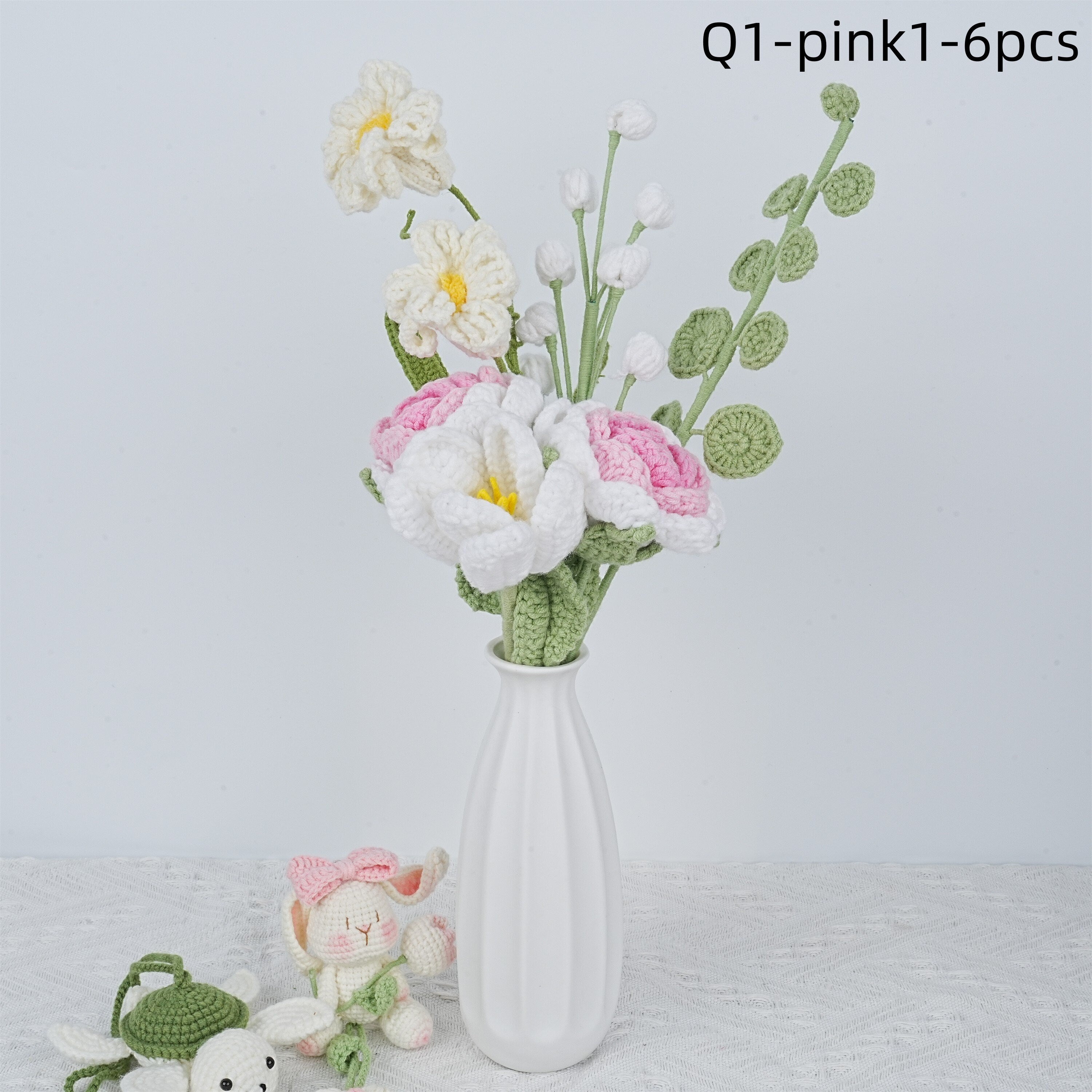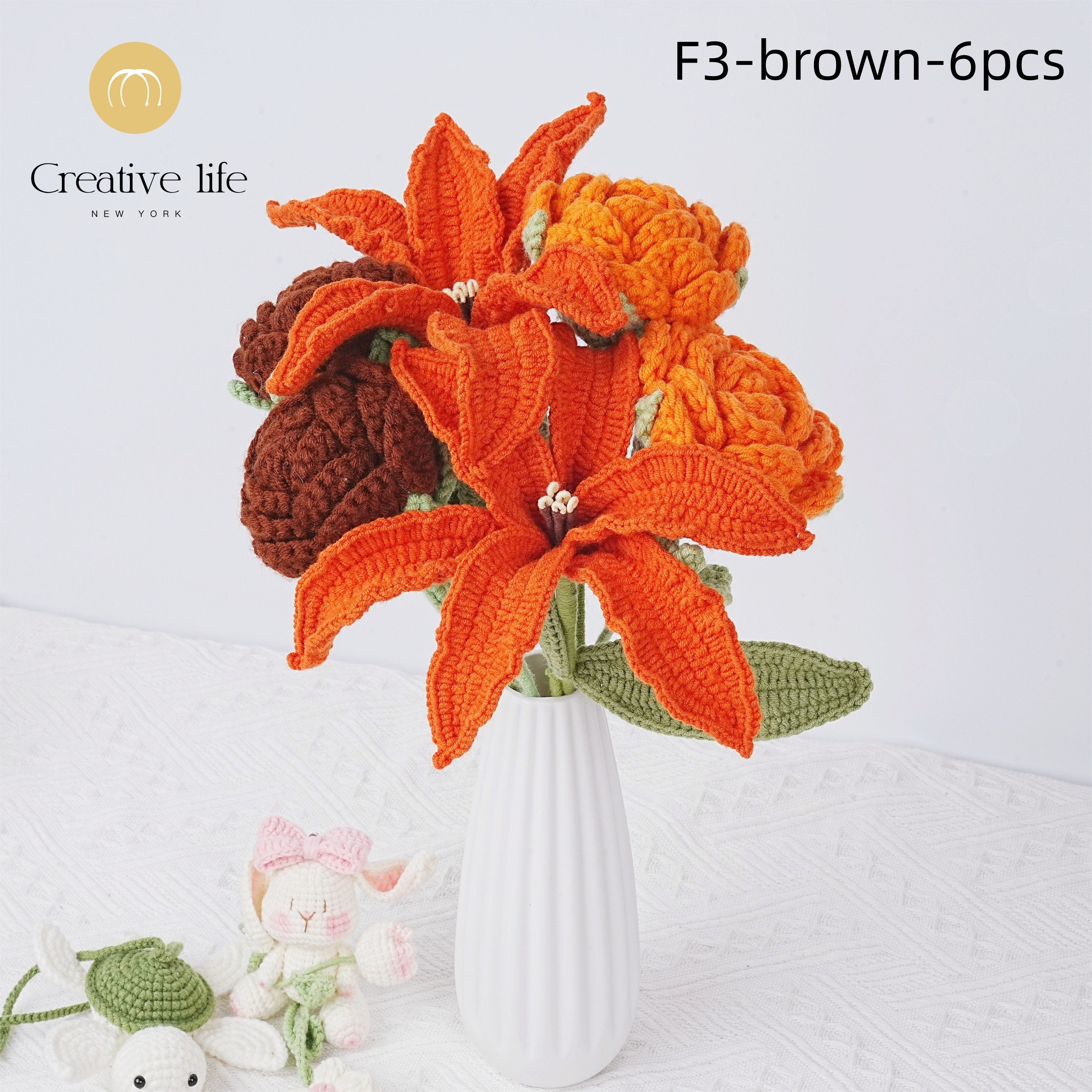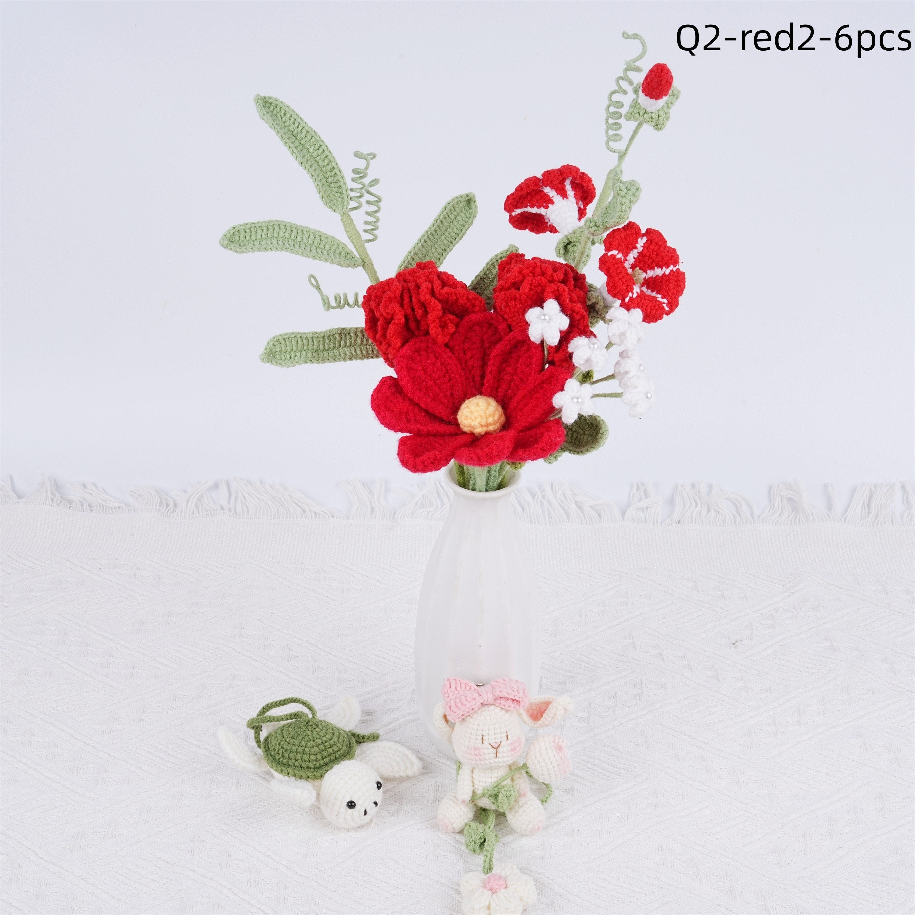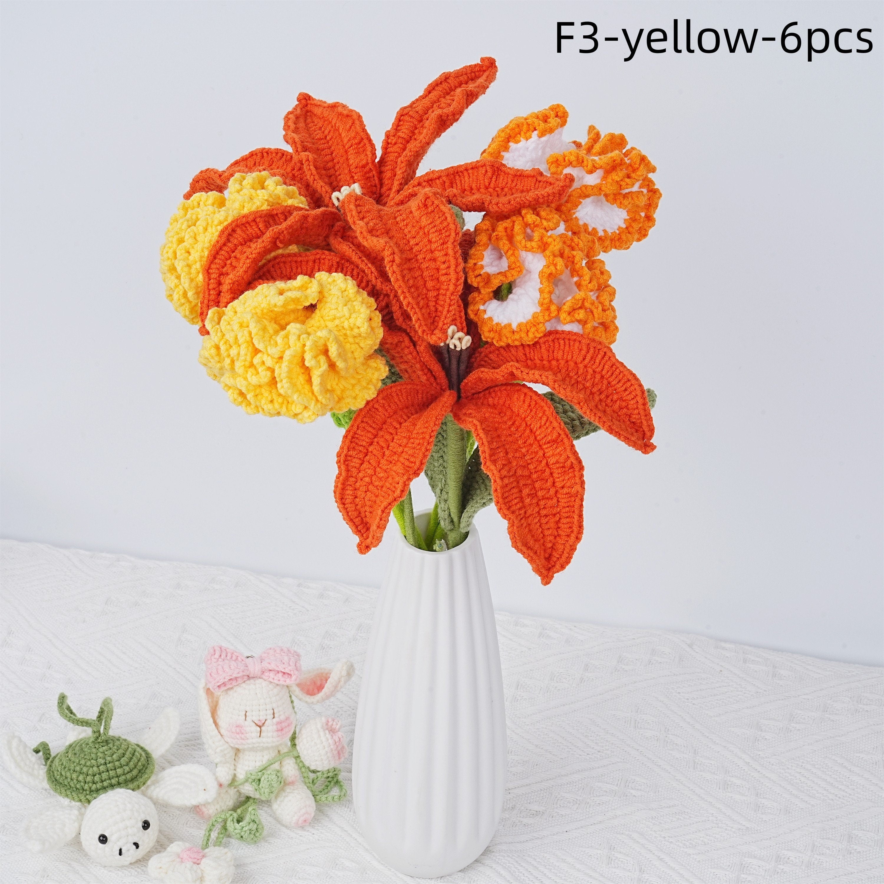 6PCS Handmade Daffodil&Rose Crochet Bouquet
