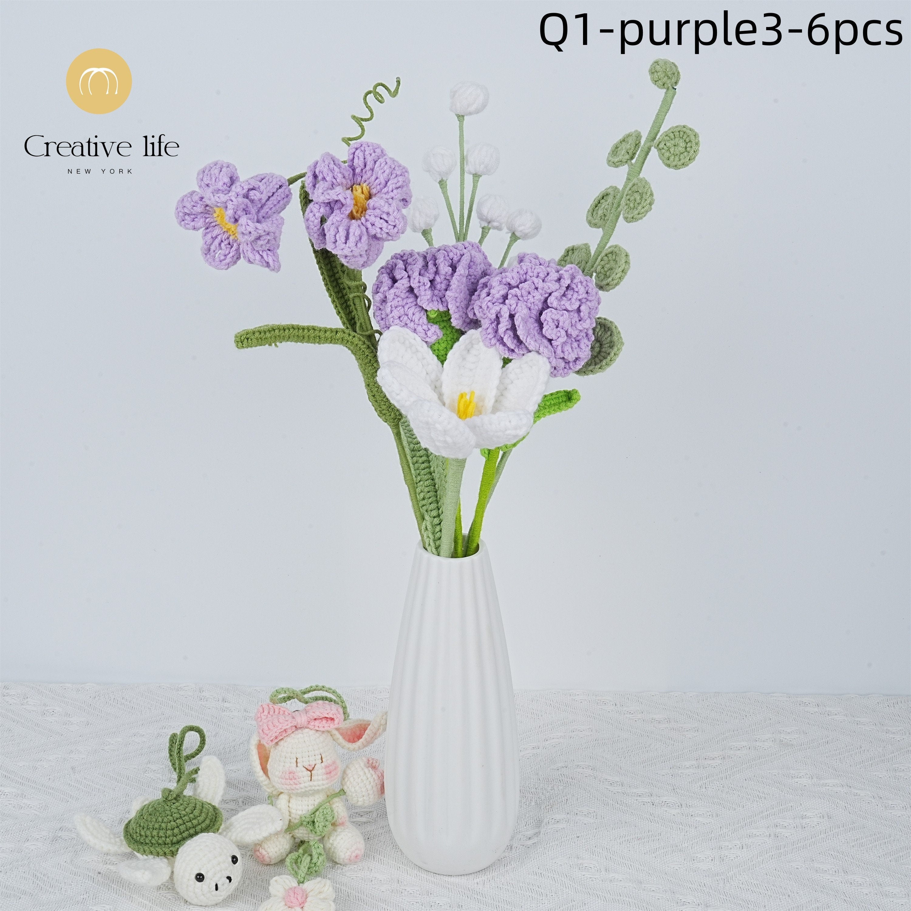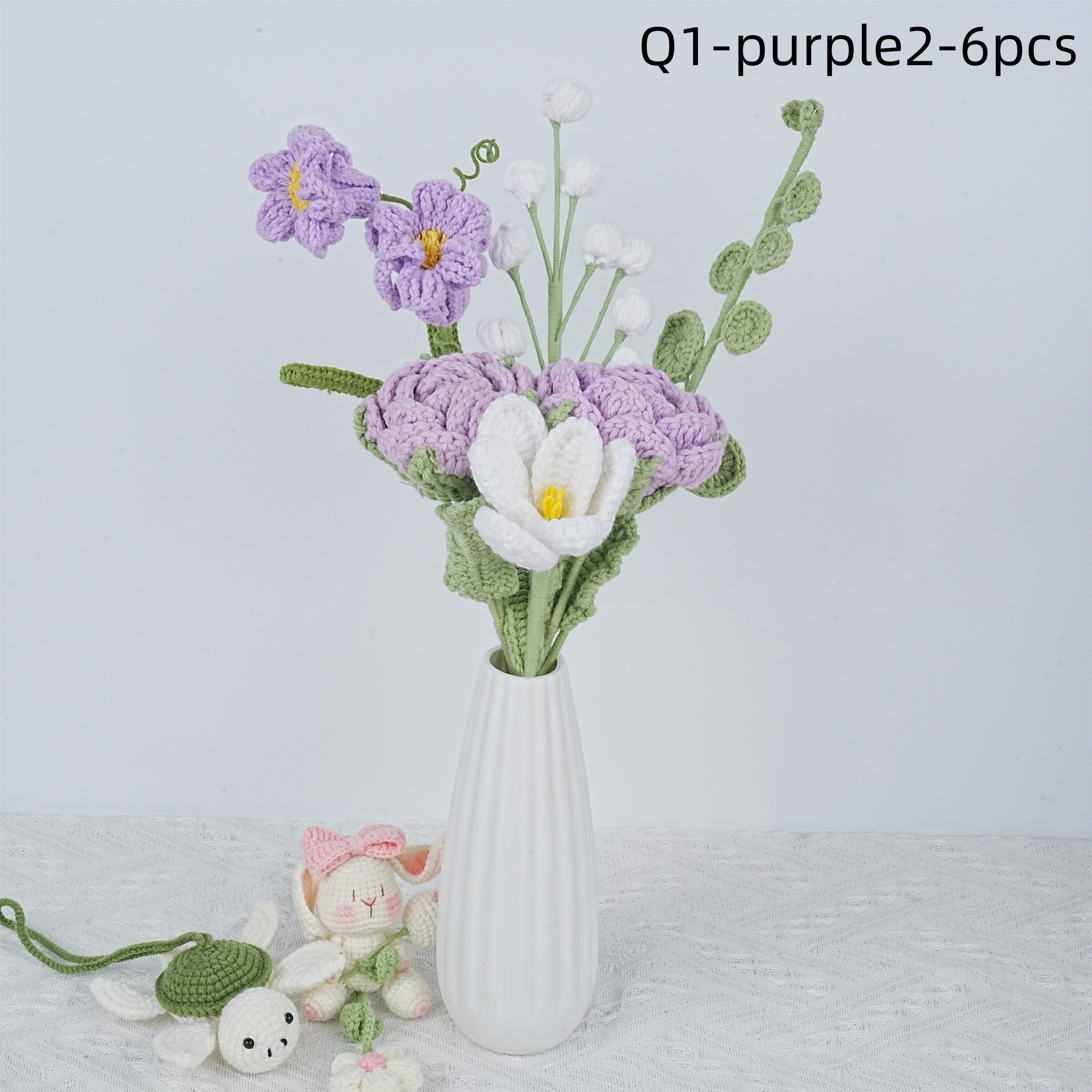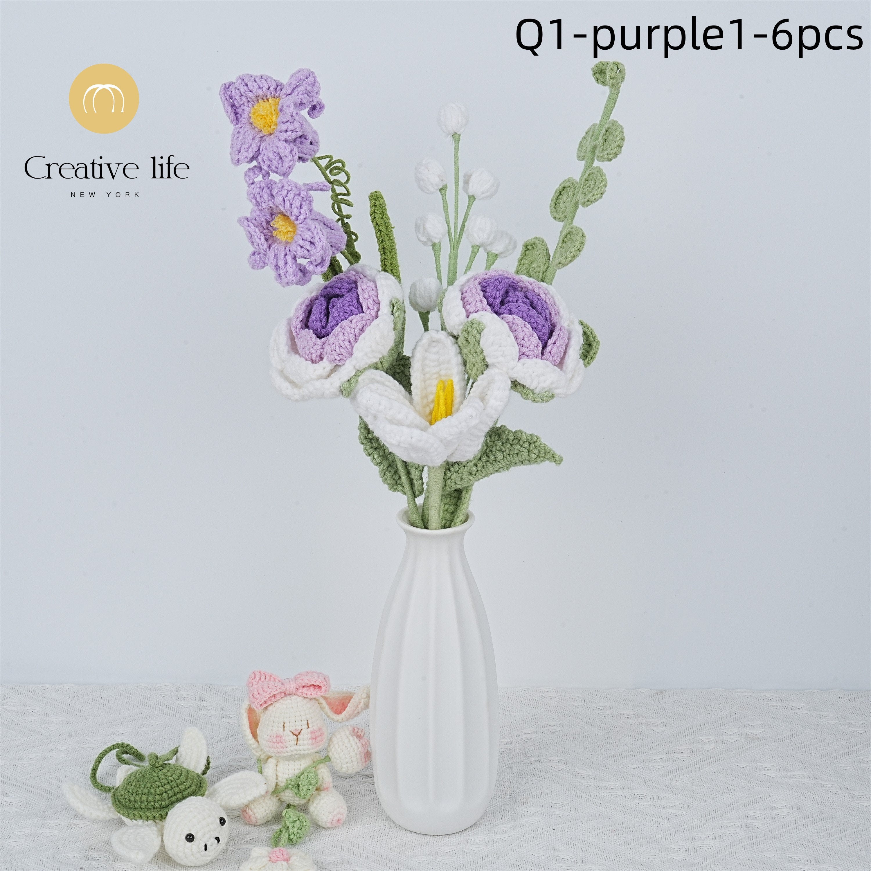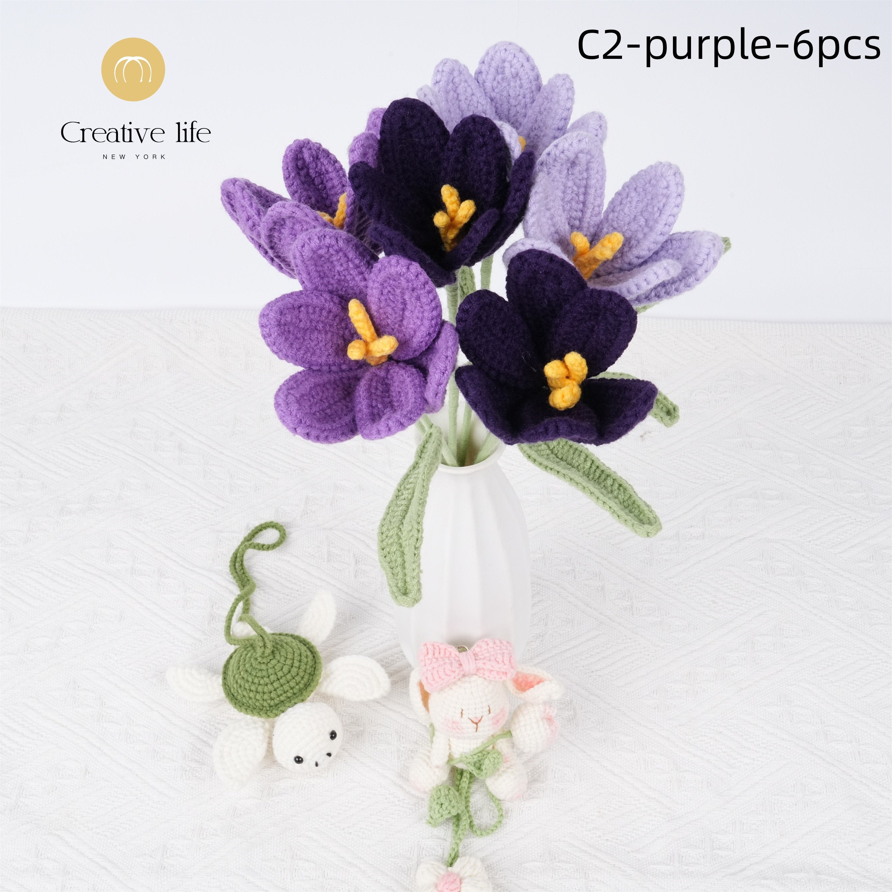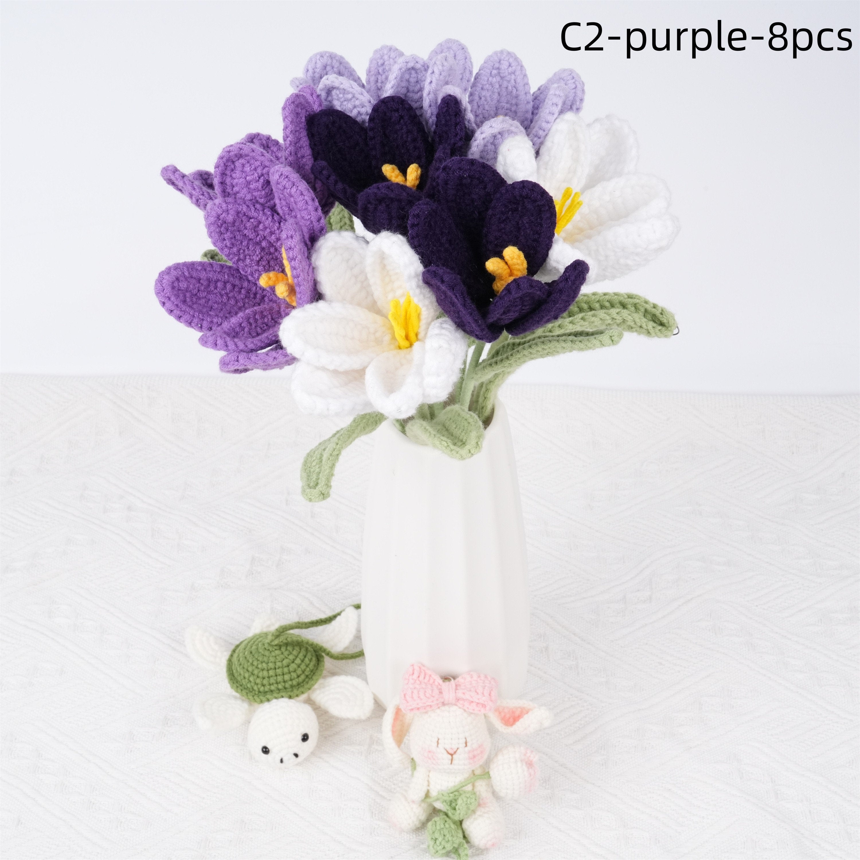 6/8PCS Handmade Purple Tulip Crochet Bouquet