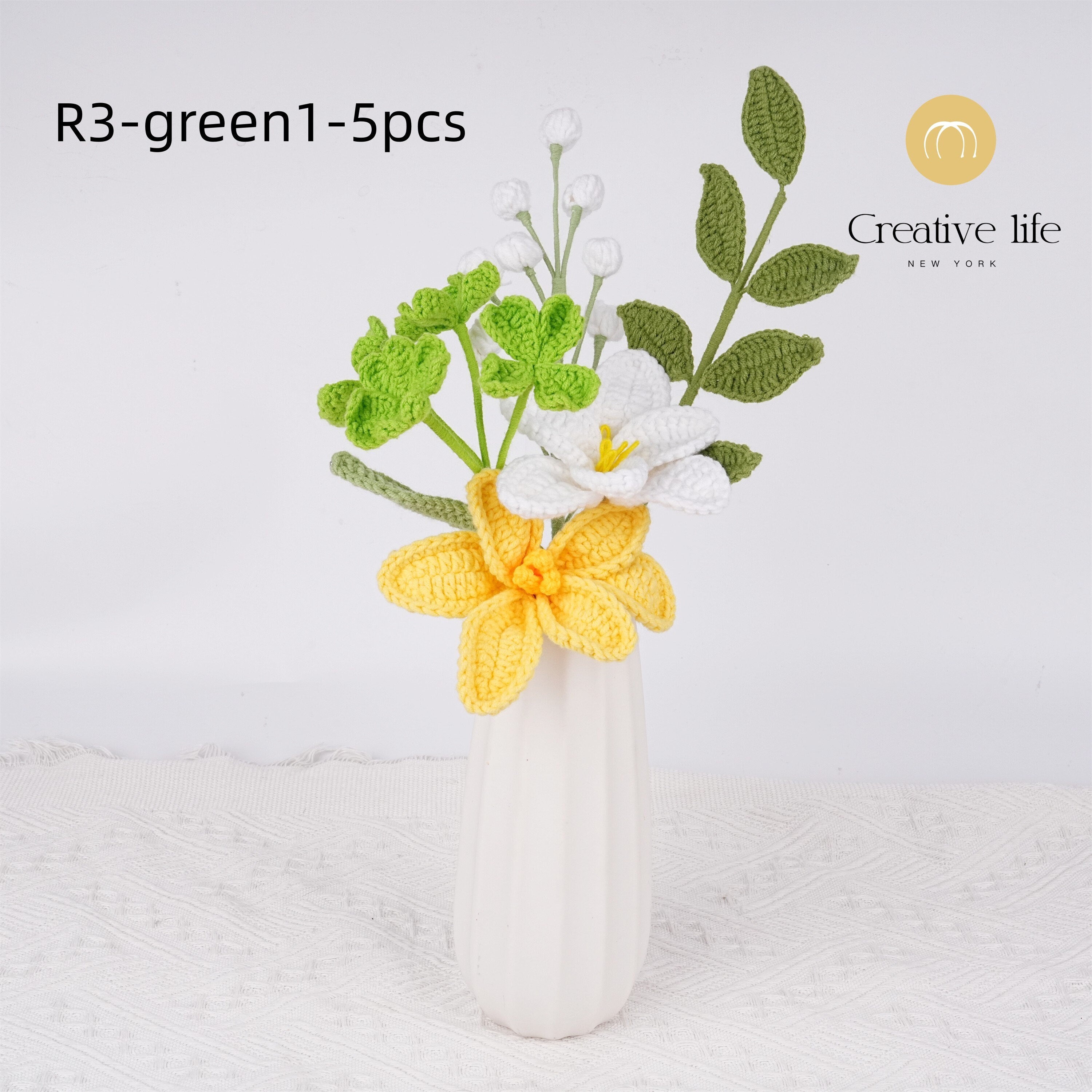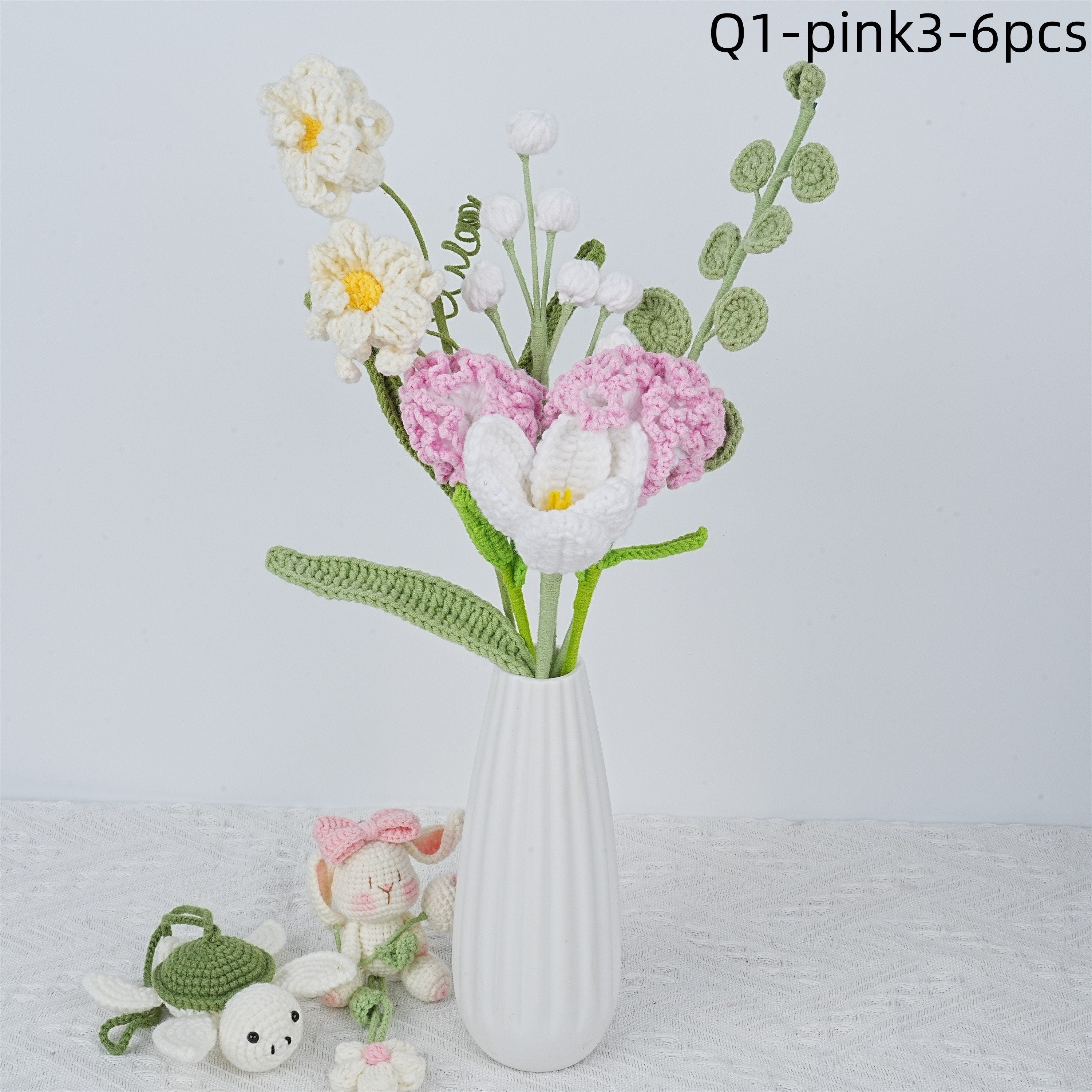 4PCS Handmade Crochet Flower Bouquet,Lily,Rose,Carnation,lily of the valley,Knitted Heart