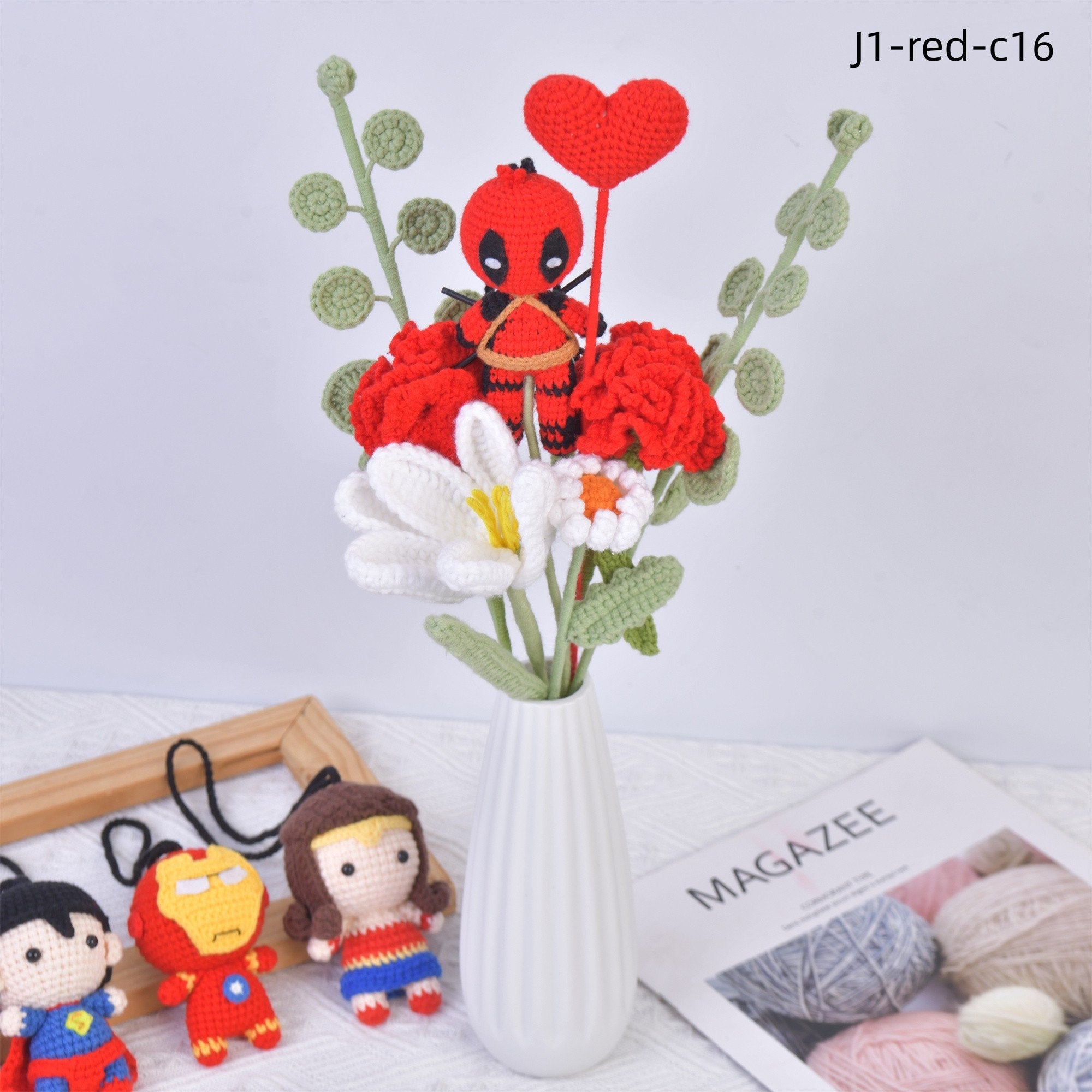 Handmade The Avengers Doll Carnation Crochet Bouquet